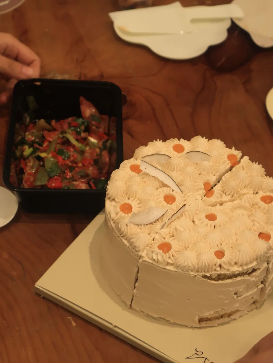 3个小时吃了近一整年分量的蛋糕,说不腻是假的。品尝到第五六款时,甜腻感累积,大家吃不动了。这时,一位参与者拿出中午打包的炒腊肉,咸香气息解救了众人。