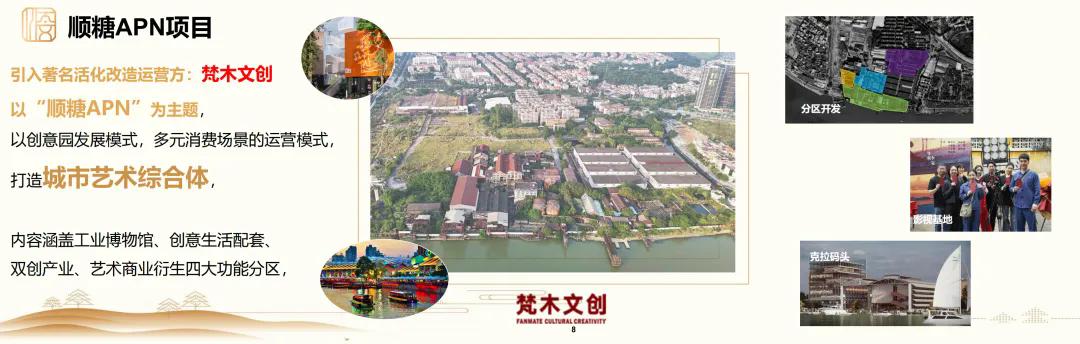 顺糖APN项目将引入梵木文创,以创意园模式打造城市艺术综合体。项目规划四大功能分区,将逐步落地影视基地等业态,激活工业遗存文旅价值。