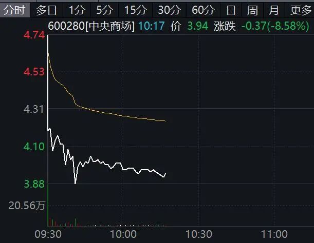 中央商场(600280)盘中上演“天地板”,此前公司走出2连板。