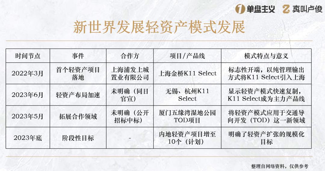 如果说瑞安是有计划地主动选择轻资产模式,那么新世界发展则是在经历收缩后收获了轻资产合作。