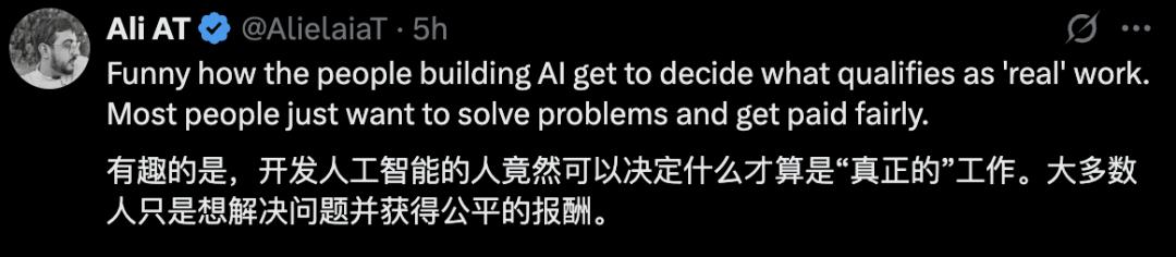 如果以一个动态眼光来看我们当下的工作,没有哪份工作是永远不可改变,或者不可取代的。当它被AI改变或者取代时,就会变得不再真实。比如,当你告诉五十年前的农民,互联网时代会有「码农」这种工作,他们可能不会相信。同样,若干年后,当AI编码真正替代了人类程序员,你再向人提起「码农」这类工作,他们可能也会觉得不真实。所以,在软件出现之前,或者在AI编码时代,程序员岗位都不再属于「真正的工作」。