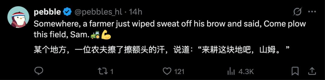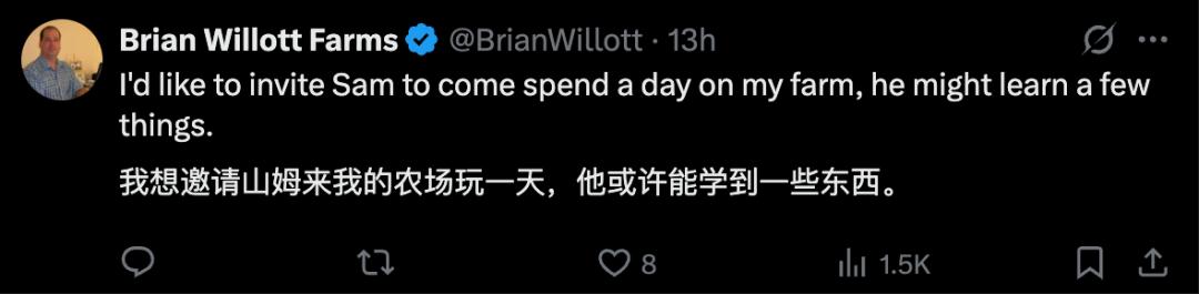 从这一点上看,CEO、码农和农民从事的工作,在本质上并没有什么区别。它们都会随着AI技术的发展而不断变化,都可能被新的技术或者工作取代。所以,奥特曼的观点,重点不是要否定当下某种工作的价值,更像是一种警示:「小心!也许不久以后,你的工作就不再是「真正的工作」了。」奥特曼的警示同样适用于自己:如果哪天AI取代了他的CEO职务,他就去做农民,就像从前一样。而且,已经有不少网友在向他发起邀请了。