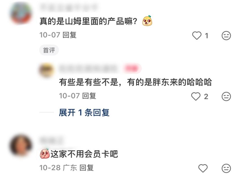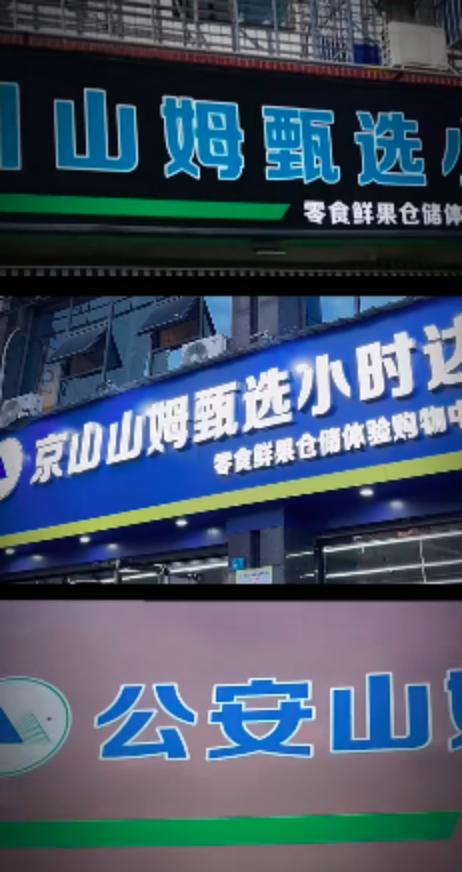 不过,不管怎么在招牌上蹭山姆,没有一家“山姆优选”敢完全复刻山姆会员商店的招牌。所以社交平台的探店帖下,总会有同城网友问:“是真的山姆吗?”“有没有网红瑞士卷卖?”