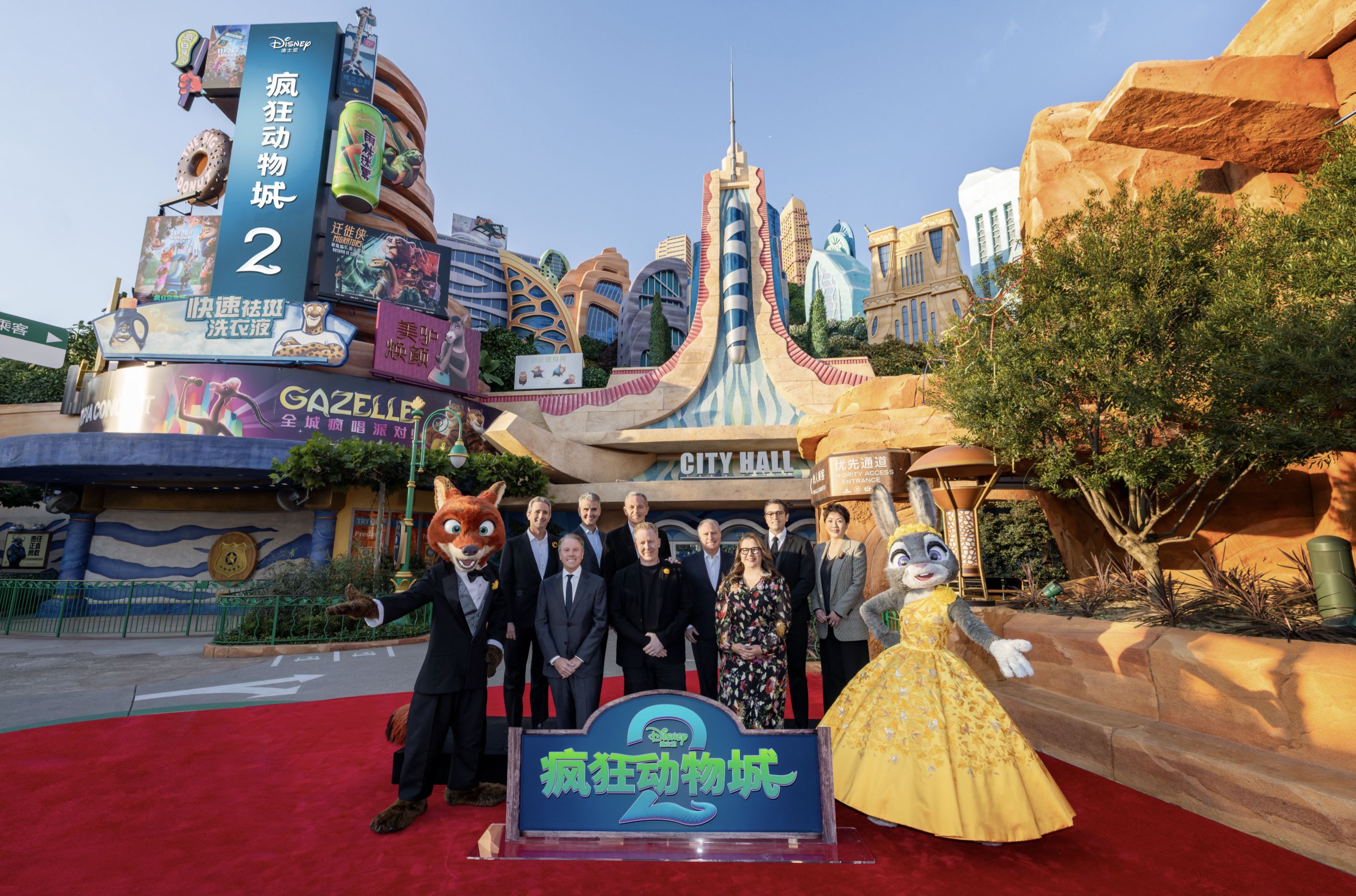 这次,和鲍勃·艾格一同出现在上海乐园的,还有迪士尼动画工作室首席创意官、编剧兼导演乔睿渤(Jared Bush)、制片人杨文娜(Yvett Merino)、为新角色“盖瑞”蛇配音的奥斯卡奖得主关继威,以及张震(配音狐尼克)、季冠霖(配音兔朱迪)两位中文配音演员,还有大鹏(配音蛇盖瑞)、费翔(配音马飞扬)、金晨(配音狸宝·梅普迪)与王安宇(配音宝伯特·林雪猁)等一众明星。