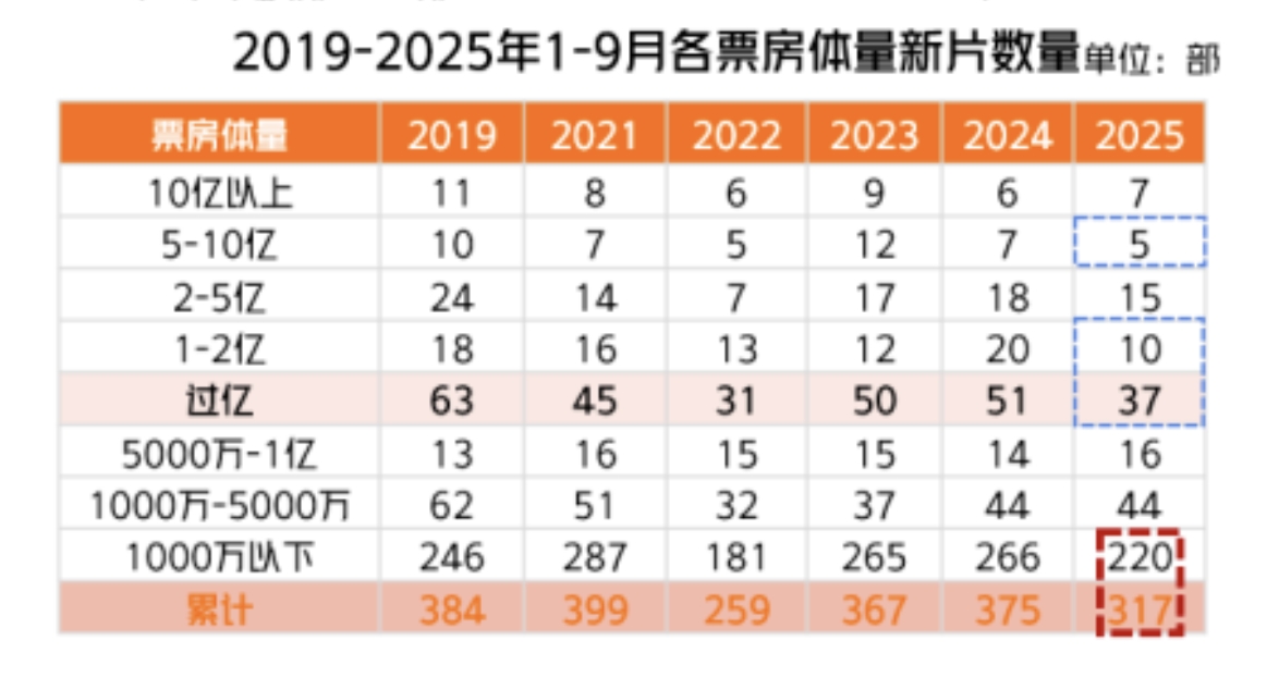 同时,全国在映影院数量再创新高,达到1.34万家,同期放映场次达到1.08亿场,同样刷新历史纪录。然而,票房过亿的影片数量却是近年来最低,这种僧多粥少的局面让影院老板们十分被动,生存空间进一步被压缩。