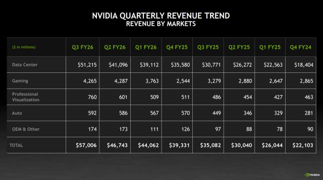 从细分业务来看,数据中心依旧是老大,Q3收入同比增长66%。在整个营收中,数据中心业务占比接近90%,这说明市场需求依然旺盛,各大科技巨头抢购热情不减。