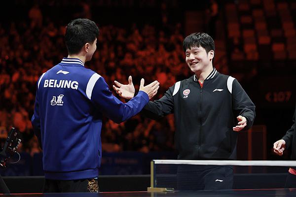 正因如此,首场男双对决成为整场比赛最关键的一战。这场对决的精彩之处在于双方把比赛细节做到了极致。马龙与许昕作为各自组合的核心,全程进行着“变与应变”的博弈。首局较量中,北京队在一次擦边球得分被挑战判定为未擦边后,一度陷入6比9的被动,但马龙与黄友政并未慌乱,逆转拿下首局,并最终以3比1击败许昕/周恺。这不仅让北京队获得了心理优势,也证明了阵容均衡的强大威力,使比赛天平向北京队倾斜。