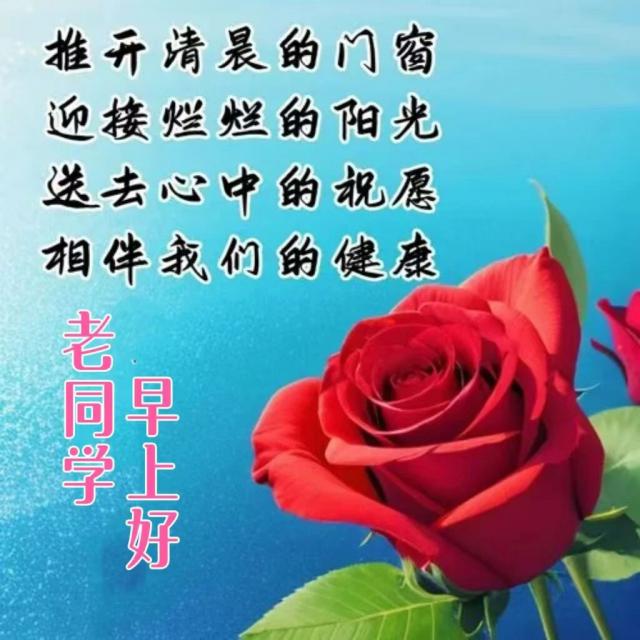 一条短信,送去祝福;一条短信,捎来关怀;一条短信,提醒添衣;一条短信,让你丢掉烦恼;一条短信,逗你开心一笑;一条短信,告知幸福来到。祝你早上安好。老同学,早上好!
