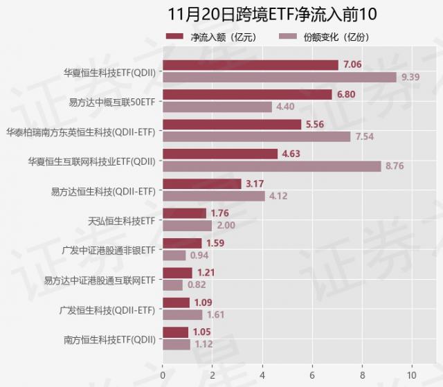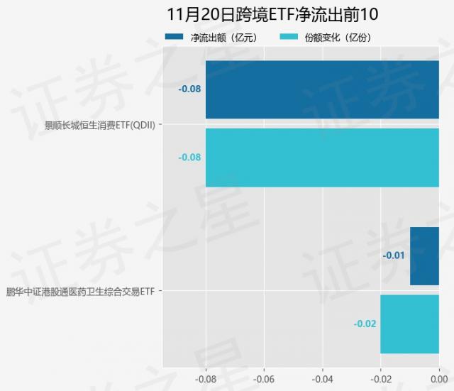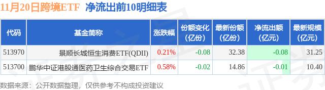 不过,当日也有2只跨境ETF基金出现资金净流出。景顺长城恒生消费ETF (QDII) (513970)净流出额排首位,其份额减少了800.0万份,净流出金额为771.1万元。
