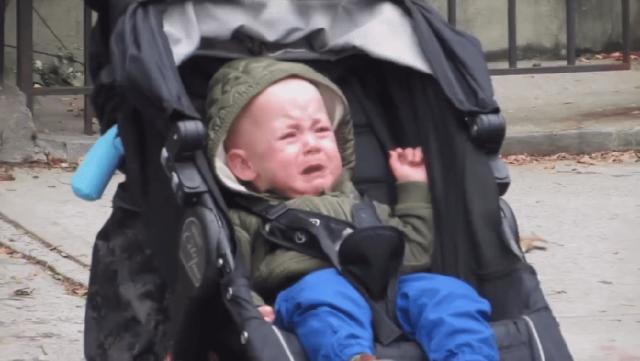 最耐人寻味的是路人的反应,大多数人觉得好奇、好笑。只有一个坐在婴儿车里的孩子,在看到这一幕时哇地哭了出来。