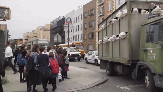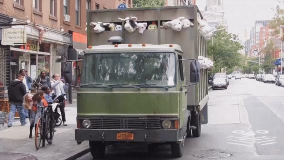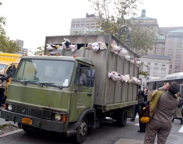 纽约街头现「屠宰班车」:可爱形象演绎残酷现实