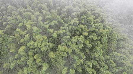 航拍井冈山神山村那满山翠绿的竹林。
