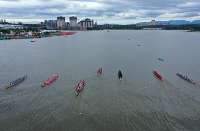 2025中国南昌国际龙舟赛在南昌市红谷滩区九龙湖水域开赛。新华社记者 周密 摄
