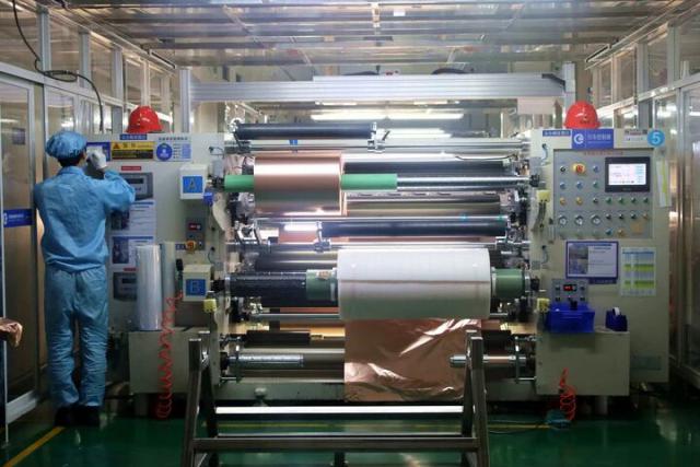 江西鹰潭的鑫铂瑞科技股份有限公司铜箔生产车间。新华网王晓震摄