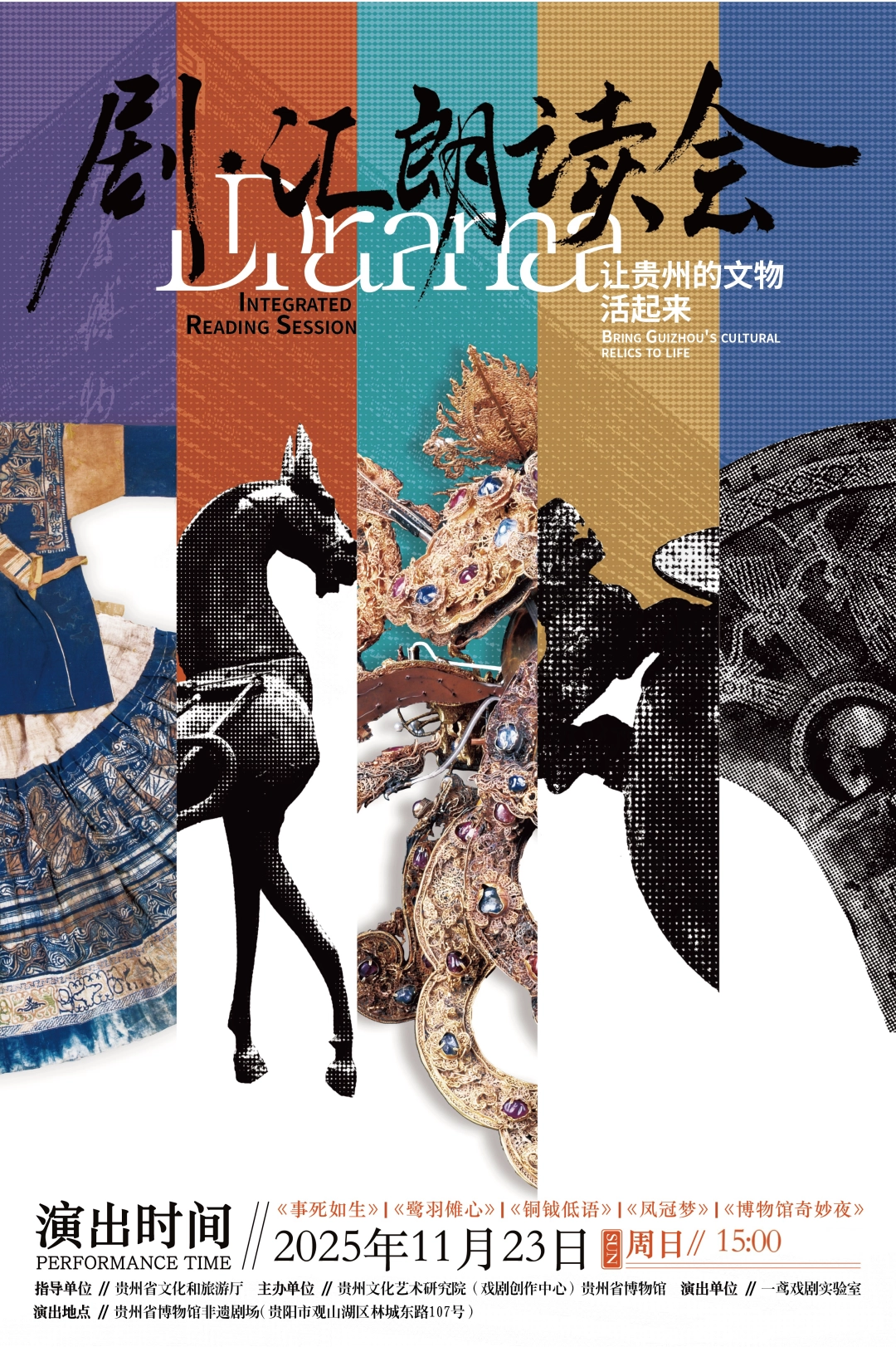 11月23日(本周日)15时,2025多彩贵州“大地之声”系列活动之《剧·汇》朗读会“让贵州的文物活起来”公益演出,将在贵州省博物馆非遗小剧场温情启幕。(贵州日报天眼新闻)