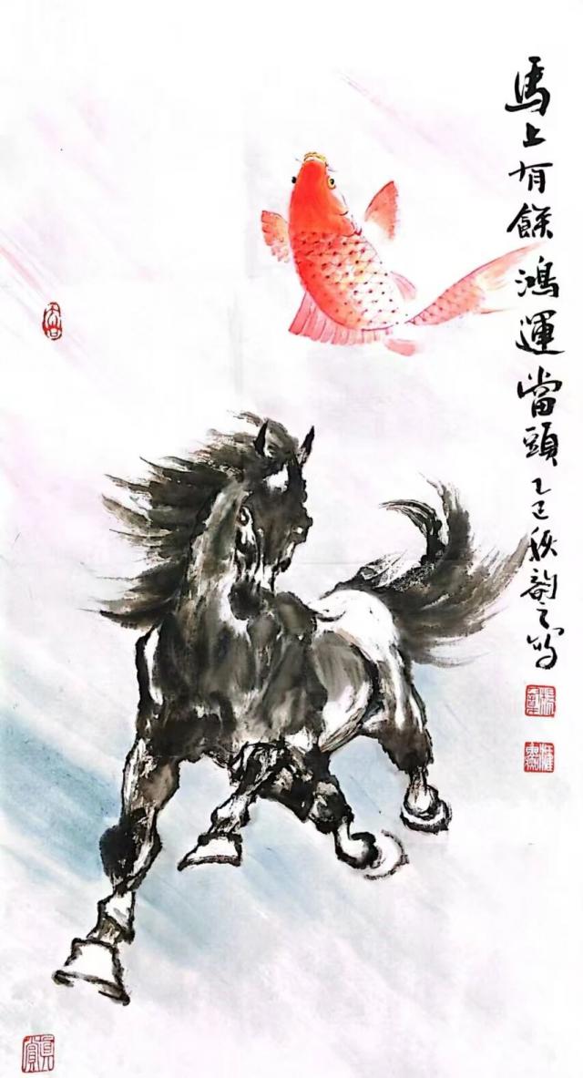 杨韵才 中国画《马上有余 鸿运当头》