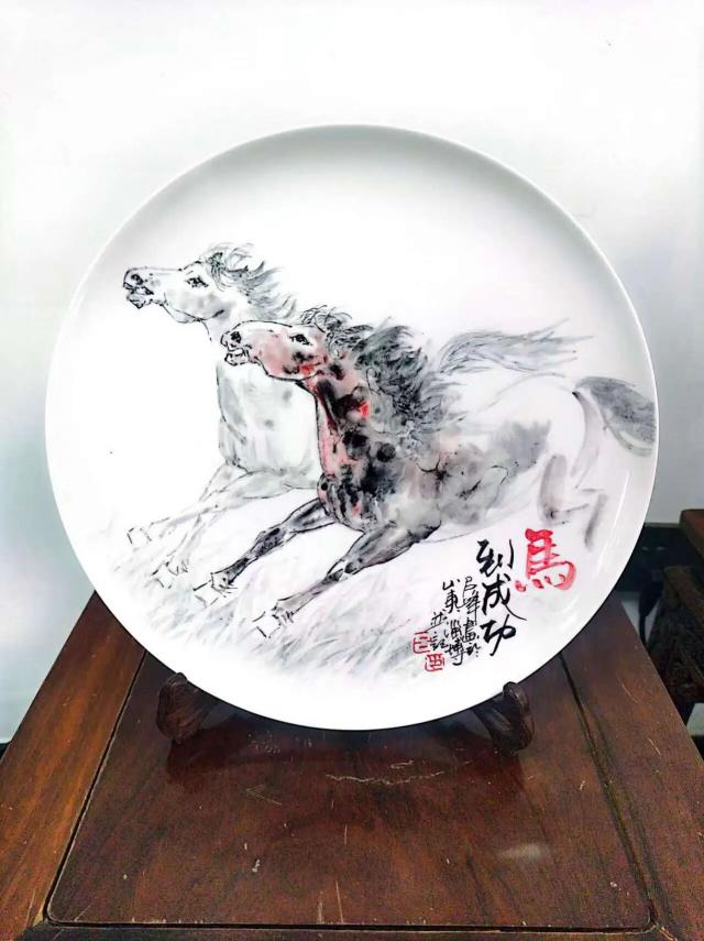 吕峰 瓷上作画马系列之一 《马到成功》