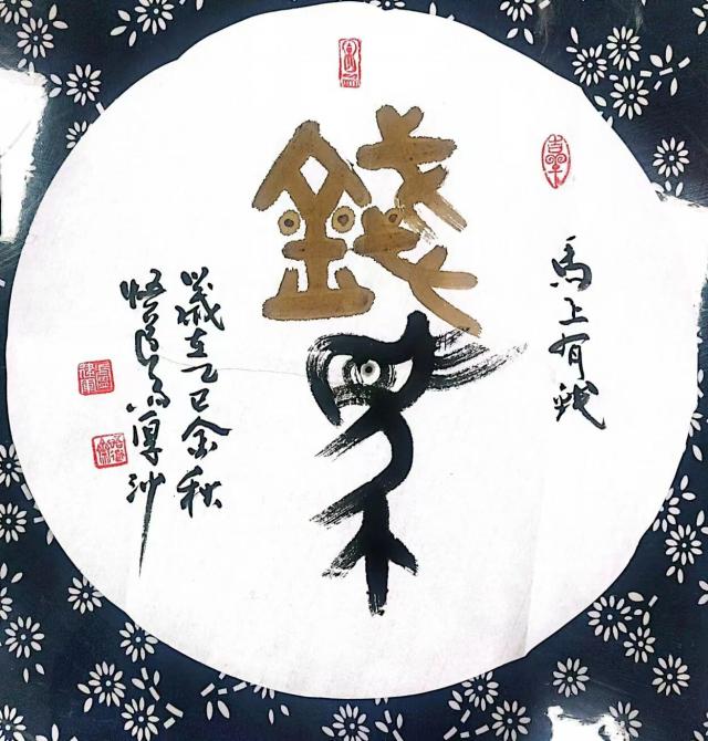 卢建军 用茶汤写的 《马上有钱》