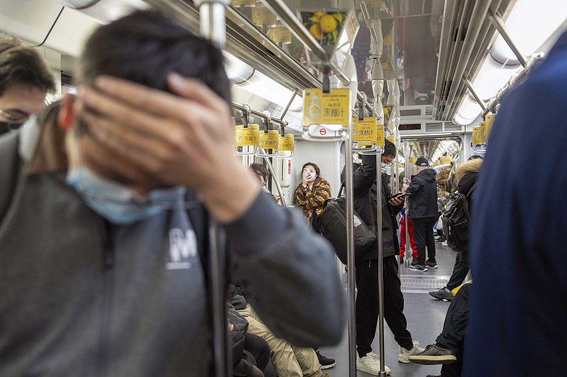 地铁上的通勤者。/视觉中国