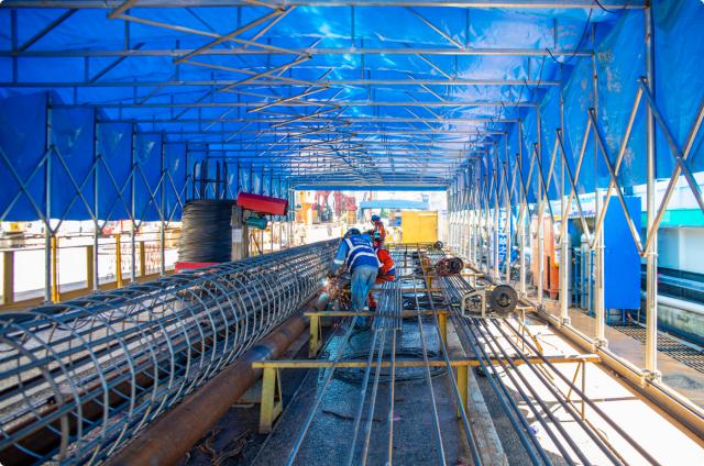 面对重重挑战,项目团队凝心聚力破解难题,采取了一系列精准高效的施工管理措施。在施工组织方面,采取分区施工策略,优先推进无管线影响区域的桩基施工,充分挖掘工期潜力;咬合桩施工采用“跳桩法”,从源头避免管线改迁后的施工冲突。在管线协调方面,每周召开协调会,及时解决堵点难点,提前完成前期准备,实现“改迁完成即开工”的无缝对接。