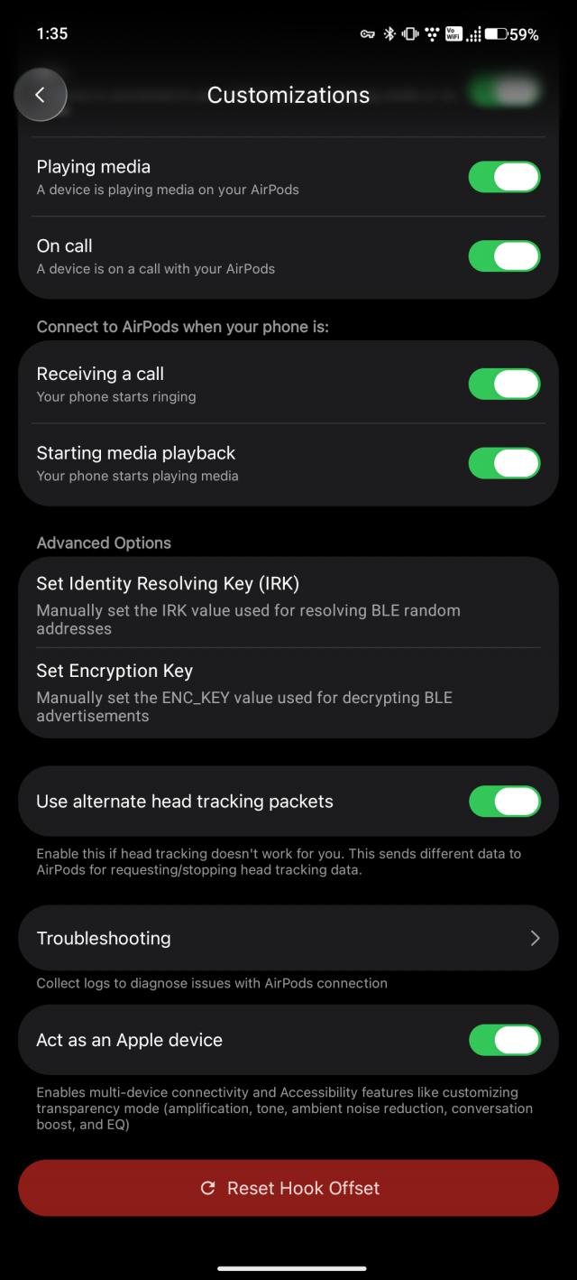 除基础控制外,LibrePods还解锁了更深入的交互功能。其中,“头部姿态”控制使用户通过点头这一简单动作就能接听电话,提升了操作的便捷性。