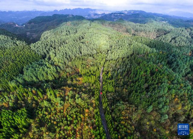 △这是 11 月 13 日拍摄的贵州省毕节市七星关区拱拢坪国有林场部分林区(无人机全景照片)。新华社记者 杨文斌 摄