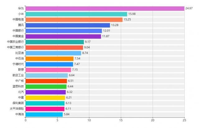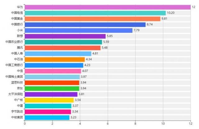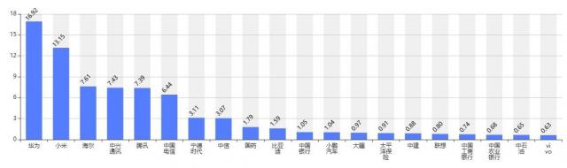 具体而言,本监测周期内,在该维度中,小米、华为及中国电信组成“第一梯队”,该梯队覆盖语种数量较上一监测周期有显著提升。腾讯、保利集团、联想、海思半导体及中国黄金组成“第二梯队”。总体来看,“第二梯队”覆盖语种数量与上一监测周期持平。