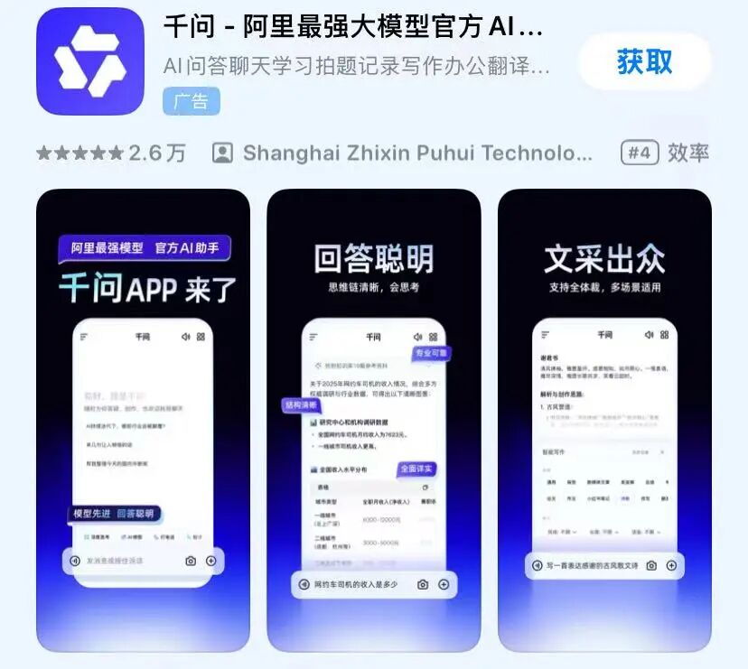 此前,阿里已将AI能力植入各业务线:淘天引入AI导购助手提供商品推荐;AI生成商品详情页降低商家运营成本;智能客服处理售后问题;高德地图加入智能语音助手,夸克集成AI问答、内容生成、学习助手等,AI在阿里业务线无处不在。