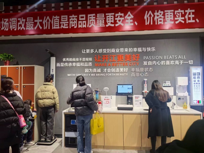 顾客服务方面,门店新设便民服务区,洗手台、半小时免费充电宝、医药箱、公平秤、纸巾、干手器、护手霜、直饮水、一次性用品等便民设施一应俱全,从细节处为顾客提供贴心服务。