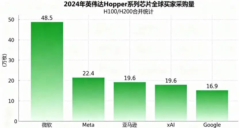 国际市场调研机构Omdia报告显示,2024年英伟达Hopper系列芯片全球最大买家包括微软、Meta、亚马逊、xAI、谷歌等,各大科技巨头都在大规模囤积GPU,为AI竞赛储备“军火”。