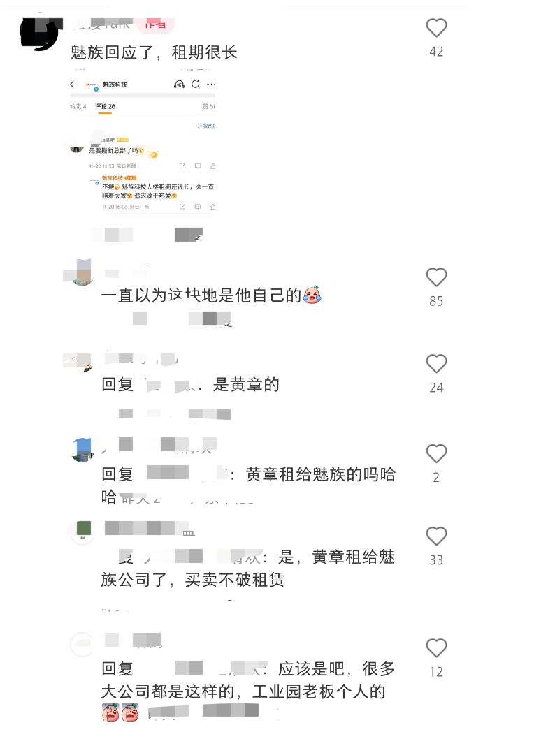 还有网络分析指出,该大楼的产权实际上归创始人黄章个人所有。所以,此次出售行为属于个人资产处置,与魅族公司的资产结构调整没有直接关系。有网友解释说“买卖不破租赁”。
