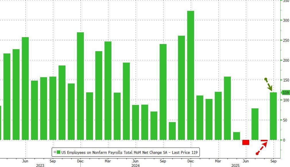 美东时间周四,美国劳工统计局公布数据,美国9月非农就业意外大幅增加11.9万人,远超市场预期的5万人。报告发布后,美国股指期货涨幅扩大,美国国债收益率全线走低,交易员继续押注美联储不会在12月会议上进一步降息。