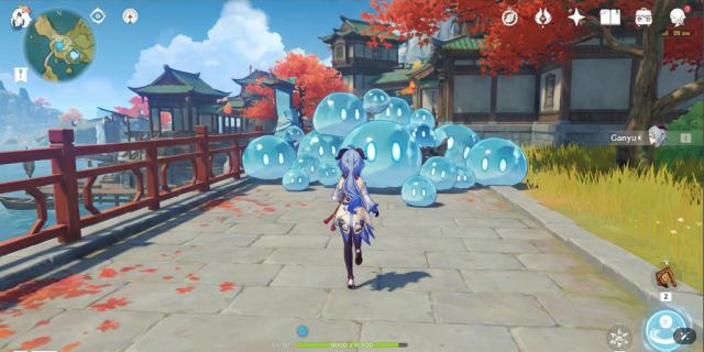 它的模仿能力惊人,生成的游戏画面截图几可乱真。像一张原神游戏截图,设定是在璃月城市边上,角色甘雨赶路,前方出现15个冰属性史莱姆。
