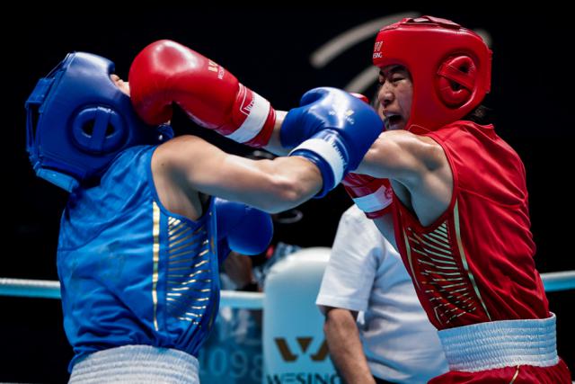 女子拳击巴黎奥运会冠军吴愉(右)登顶全运,实现大满贯(文汇报 王竟成)