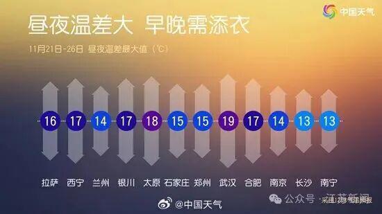 11月是长江中下游至华南等地不少城市下半年昼夜温差最大的月份。