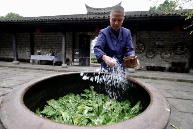 这份喜爱还藏着代代相传的生活智慧。民谚说“蔬菜三分粮,咸齑当长羹”,看似普通的小菜,经过日晒脱水、盐腌入味、按压紧实、缸封发酵等过程,在寒冬中调出鲜爽滋味,尽显物尽其用的生活巧思。