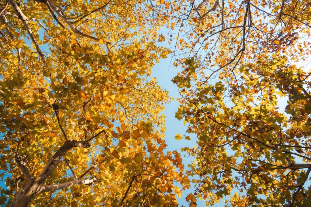 广场旁的悬铃木,舒展的枝干与湛蓝的天空形成鲜明对比,为秋景图添了一份清爽。