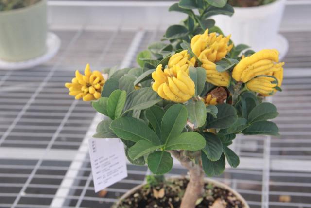 目前,基地引种了3个品种,分别是金华佛手柑、红花佛手柑与千指佛手柑。其中,金华佛手柑获得国家地理标志产品认定,果实质地饱满,药用价值高;红花佛手柑花色紫红,果实保鲜期长,适宜插花与制作成礼品;千指佛手柑果型小巧精致,呈宝塔状,近年来成为盆景市场的新宠。