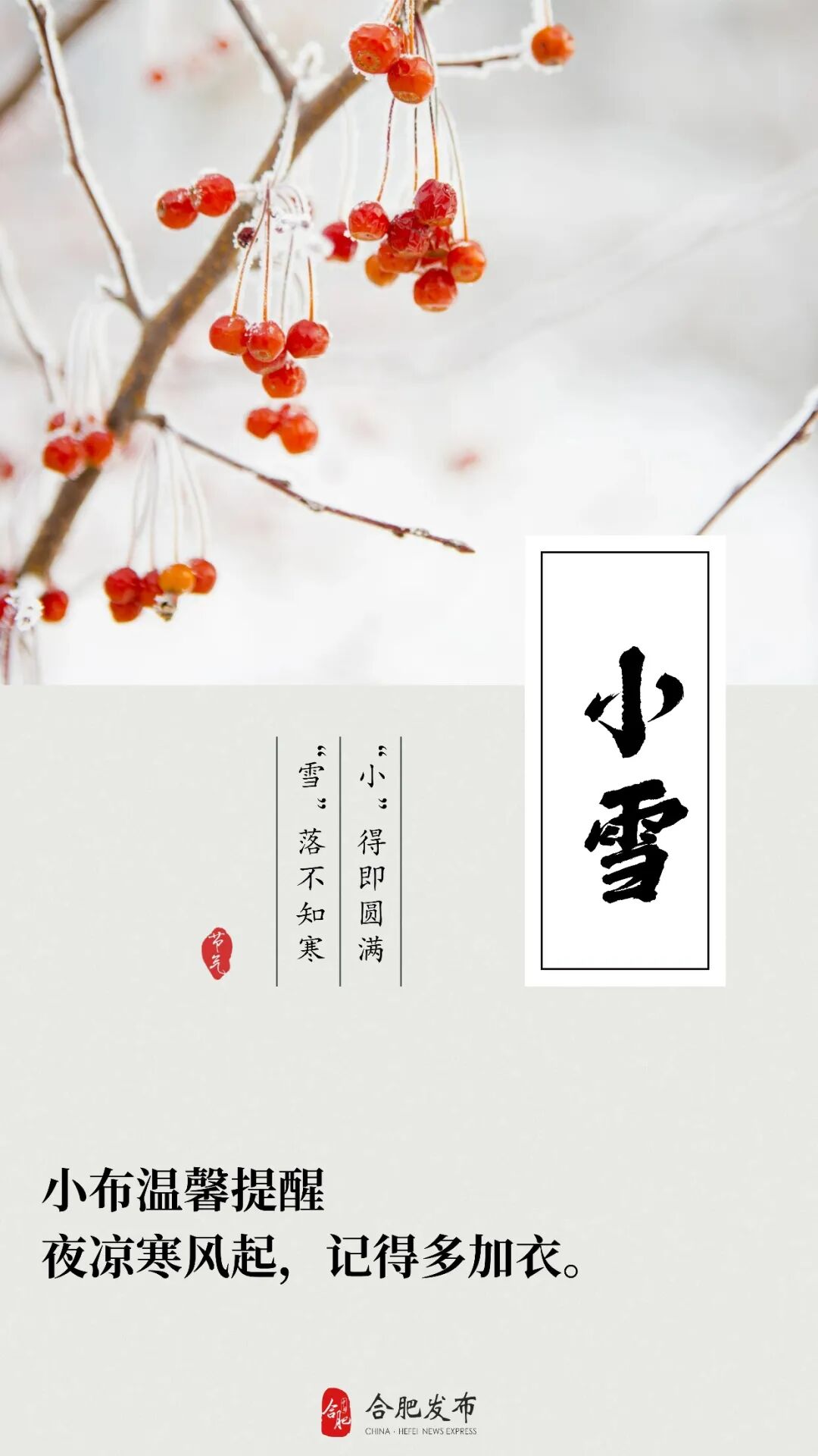 小雪节气天气转寒,大家要做好防寒保暖工作,及时增加衣物,尤其要注意头部、腰背部的保暖。