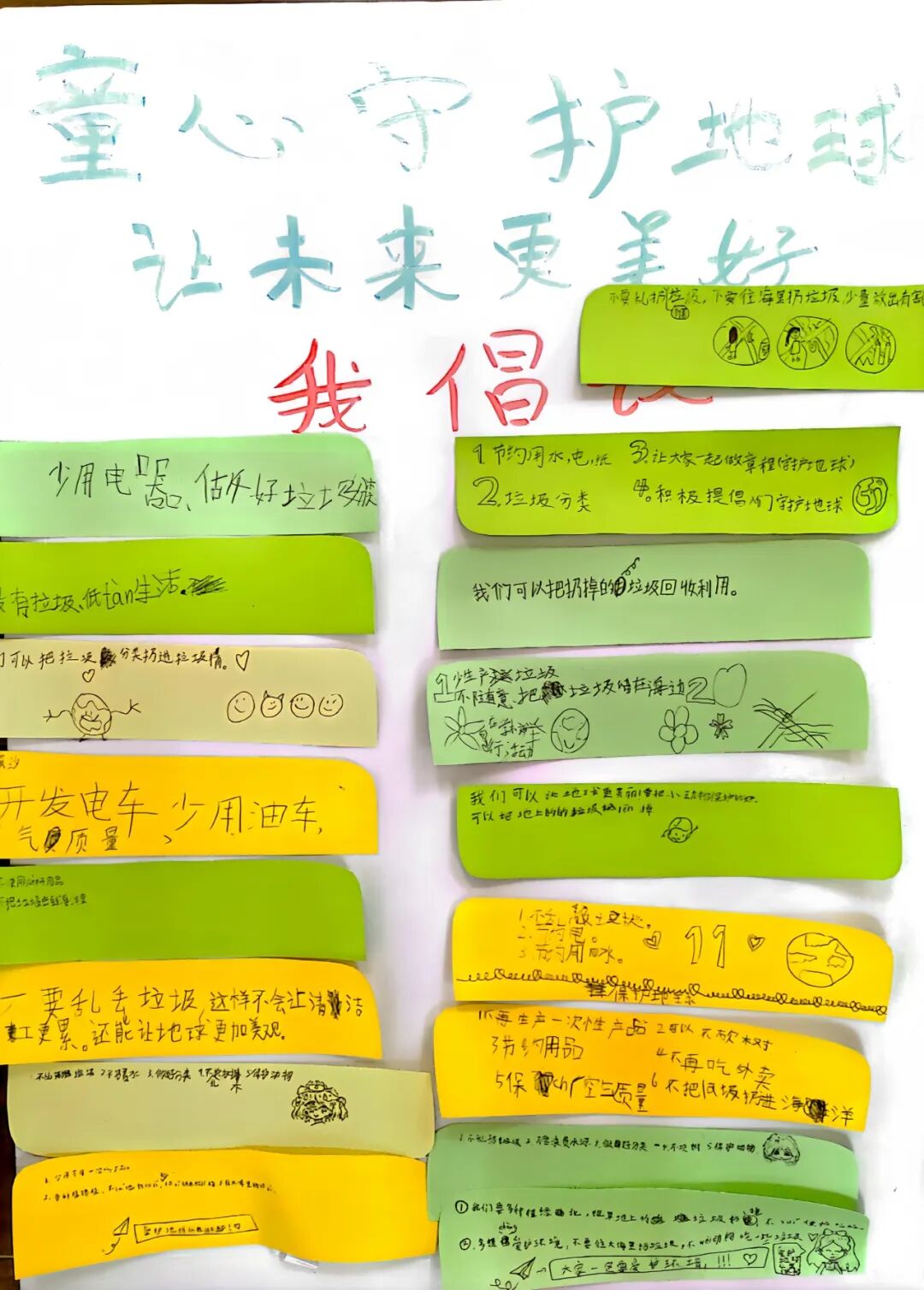活动尾声,孩子们在倡议板上郑重写下承诺,如“多种植树木”“节约每一滴水”“坚持绿色出行”等。一张张稚嫩的便利贴,汇聚成延吉社区最美的绿色风景线。