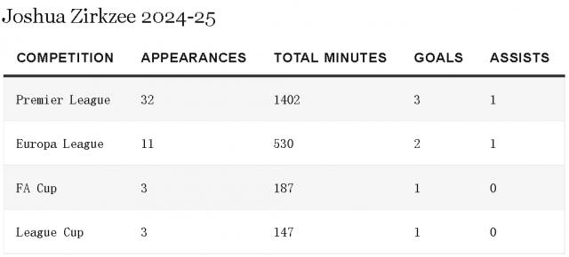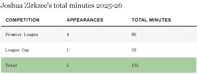 然而,齐尔克泽的机会有限。姆贝莫和阿马德都在时,即便谢什科没伤,阿莫林在重大比赛也倾向于使用无锋阵,姆贝莫、库尼亚、阿马德和芒特都是40岁的葡萄牙少帅更信任的球员。