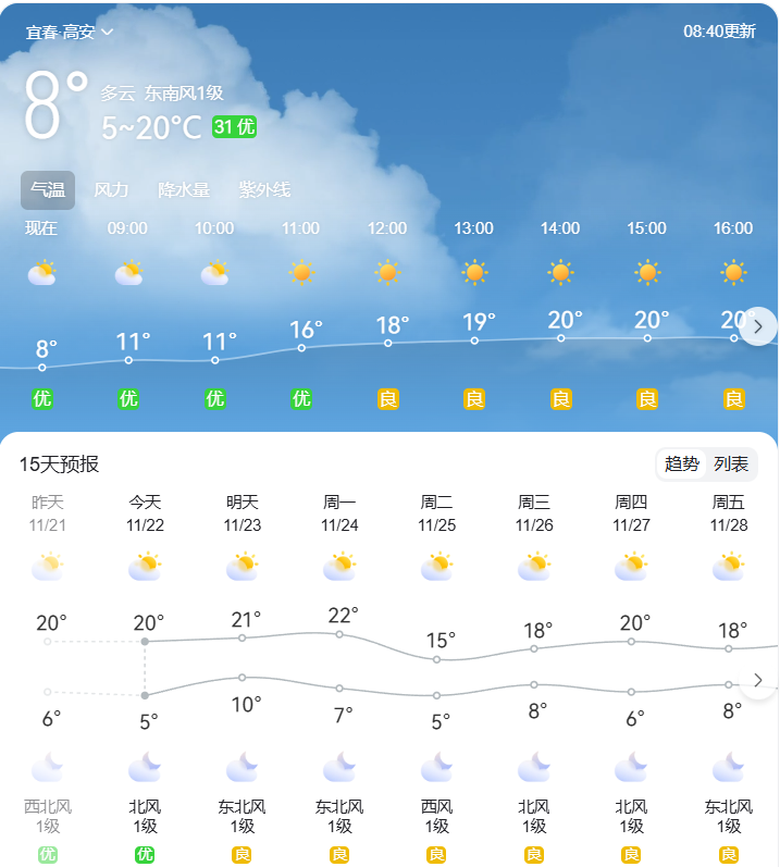 小雪将至,高安接下来的天气如何?一起来看看。