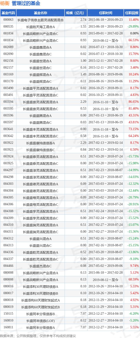 长盛盛世混合A基金经理调整:增聘杨衡,王远鸿离任