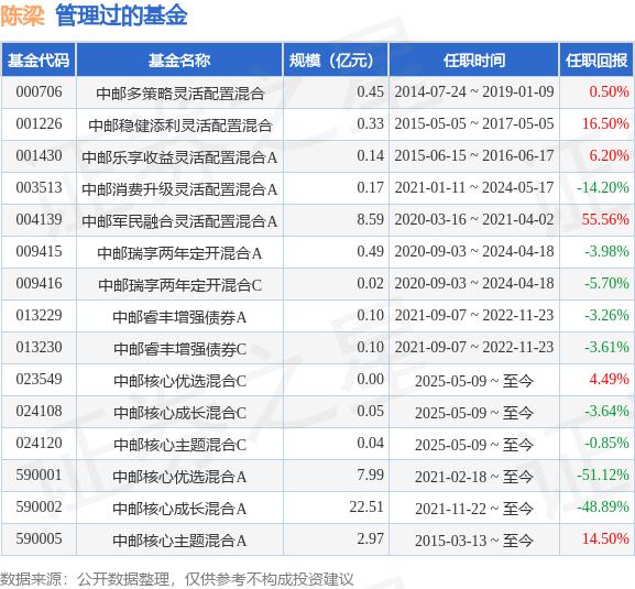 中邮能源革新混合型发起A基金经理调整:陈梁新上任,白鹏离任