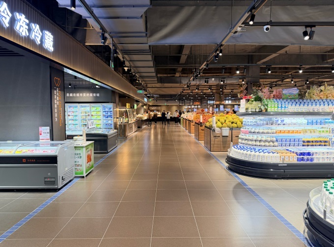 生鲜方面,门店保障民生需求,主打安全健康,扩大鲜肉、水产、海鲜等经营面积,增加中高端商品。遵循健康、安全等选品原则,引进有机菜、土猪肉等,满足多样需求。