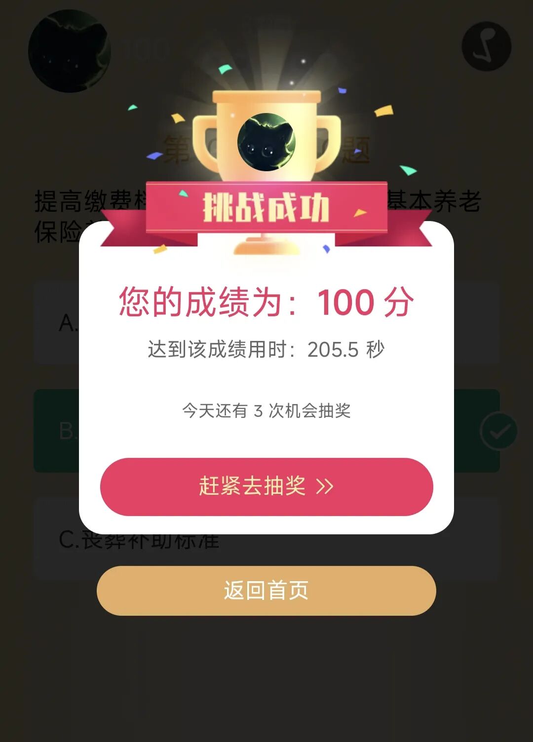 2. 答题结束后,成绩100分者可参与抽奖,有机会获得随机红包。