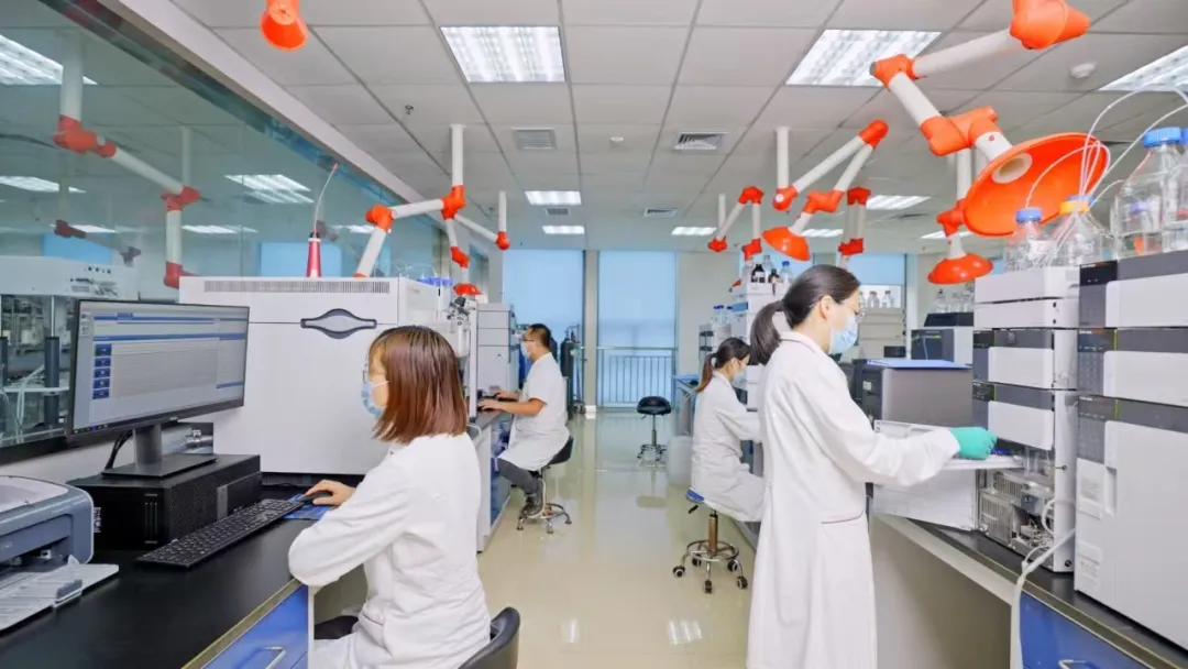 潍坊市检验检测中心工作人员正专注于药品检测工作。