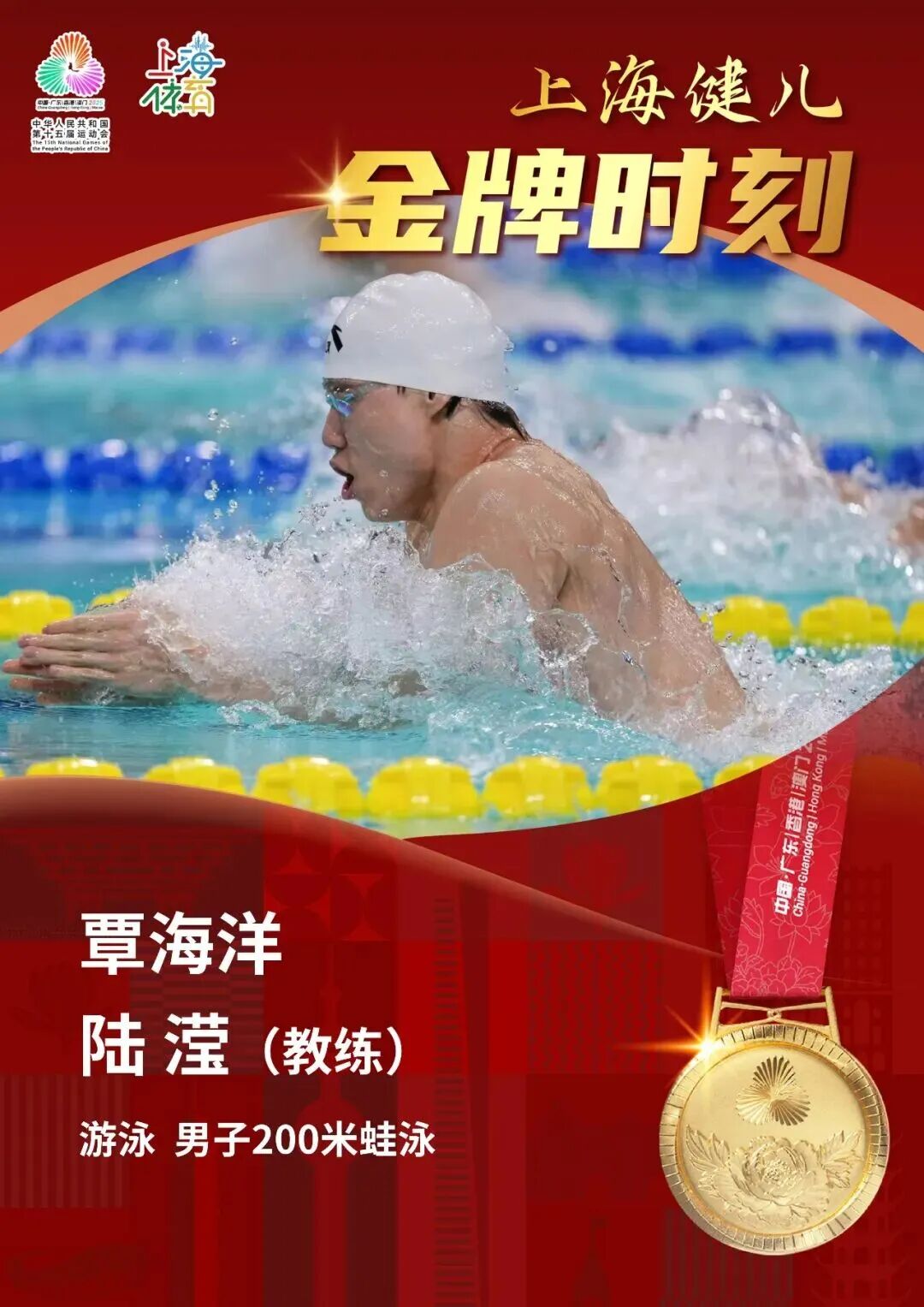 十五运会的赛场上星光璀璨。在男子100米蛙泳决赛中,运动员覃海洋以58秒98的好成绩夺金,收获了个人本届全运会的首枚金牌。随后在男子200米蛙泳决赛中,覃海洋依旧发挥稳定,以2:07.69的成绩再次登上冠军领奖台,成功斩获个人本届全运会的第二枚金牌。