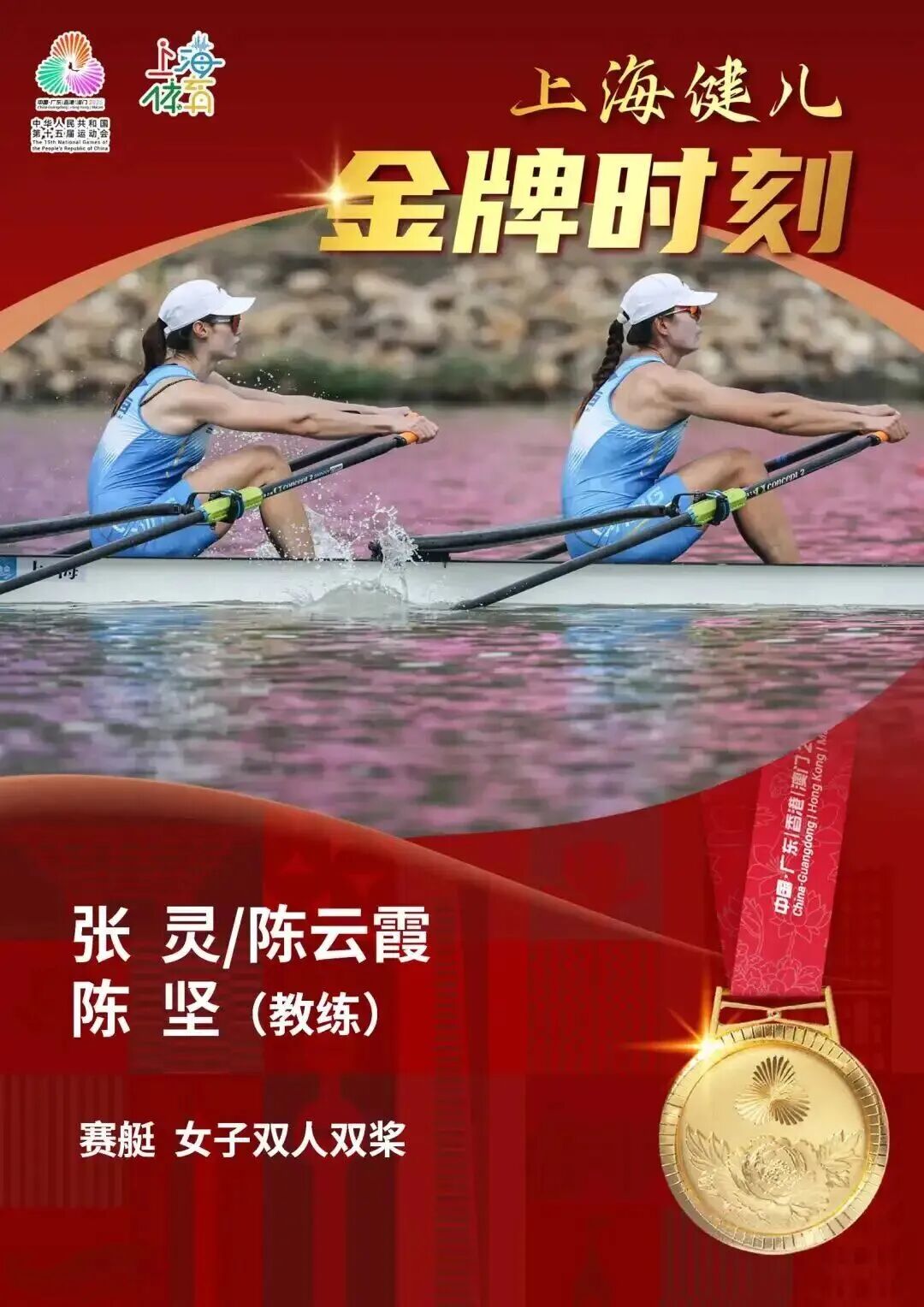 有人坚守初心,有人默契协作。在第十五届全国运动会赛艇女子双人双桨决赛中,闵行运动员陈云霞与队友张灵配合默契,以5分03秒31的成绩夺得金牌,成功卫冕全运会该项目冠军。