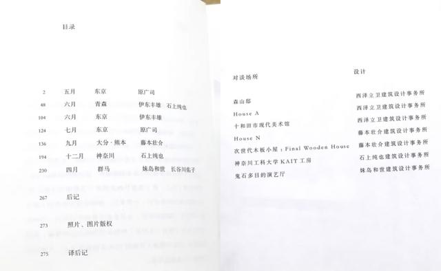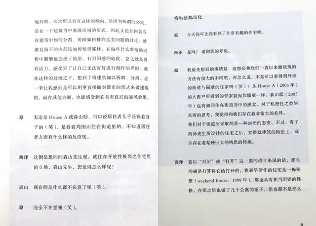 他们的对话发生在不同空间和时间,比如西泽立卫设计的 House A、森山邸、十和田市现代美术馆里,起因是不同建筑师来访并与西泽立卫交流。书中共有 7 章这样的对话。